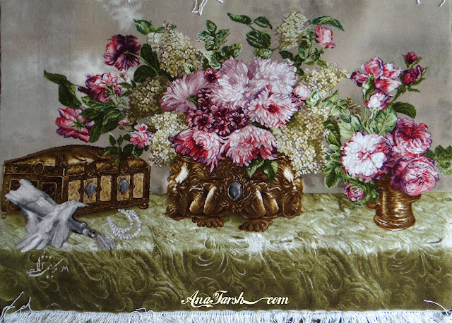 Florist Girl Carpets, 50 Knots, Pile: merino & Silk , Warp: Silk , Dimensions: 95 x 63 cm - without frame