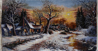 winter landscape carpets, 50 Knots, Pile: Silk&merino, Warp: silk, dimensions 53x 97 cm(without frame),Texture: Tabriz